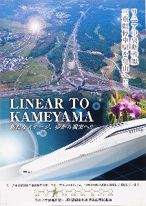亀山市では、東海旅客鉄道株式会社(JR東海)が計画しているリニア中央新幹線について、平成4年(1992)から亀山駅を実現させるための活動をおこなっています。また現在も、「LINEAR TO KAMEYAMA~新なステージ、夢から現実へ!!」を合い言葉に活動を続けています。