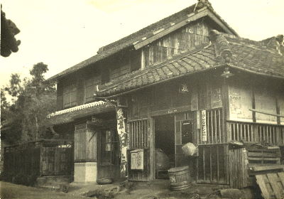 これは、東町一丁目にあった田中醤油店を写したもの。田中醤油店は、屋号は田中屋といい、「亀印」という銘柄の醤油を醸造していたんだ。