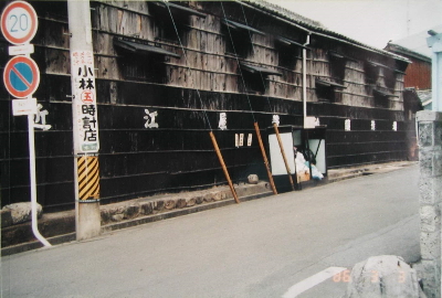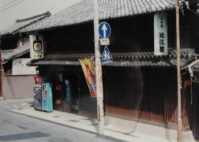 これは、戦後に撮影された近江屋の店先だよ。店は大正10年(1921)に建て替えられたんだって。
