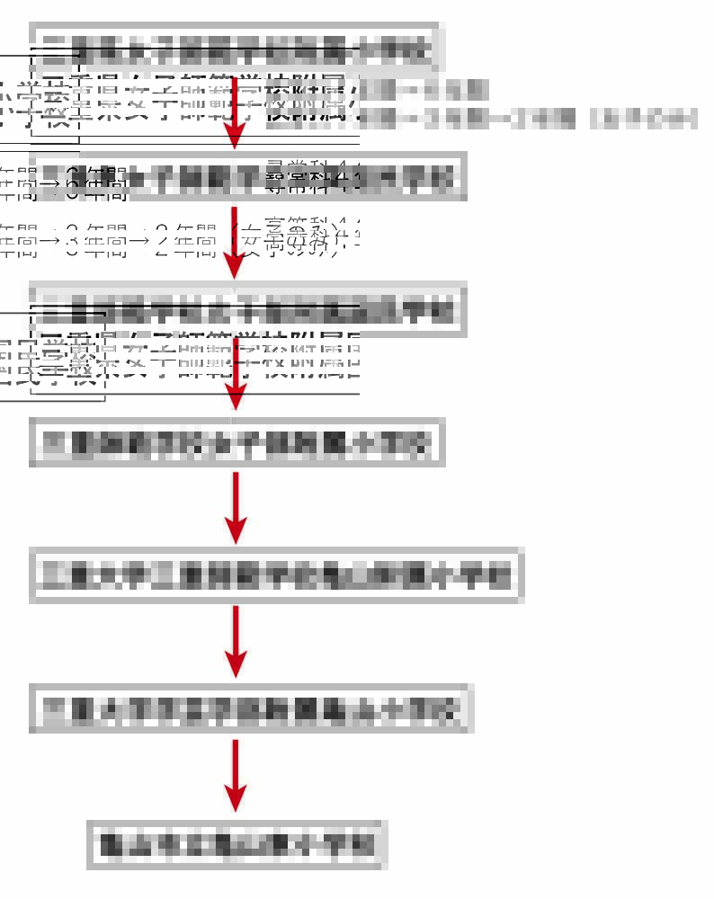 尋常小学校(じんじょうしょうがっこう)の教科(きょうか)と高等小学校(こうとうしょうがっこう)の教科(きょうか)を一つの小学校(しょうがっこう)で行(おこな)う学校(がっこう)は、尋常高等小学校(じんじょうこうとうしょうがっこう)としました。尋常小学校(じんじょうしょうがっこう)の修業年限(しゅうぎょうねんげん)は4年間(ねんかん)とし、高等小学校(こうとうしょうがっこう)の修業年限(しゅうぎょうねんげん)は2年間(ねんかん)、3年間(ねんかん)、または4年間(ねんかん)としました。