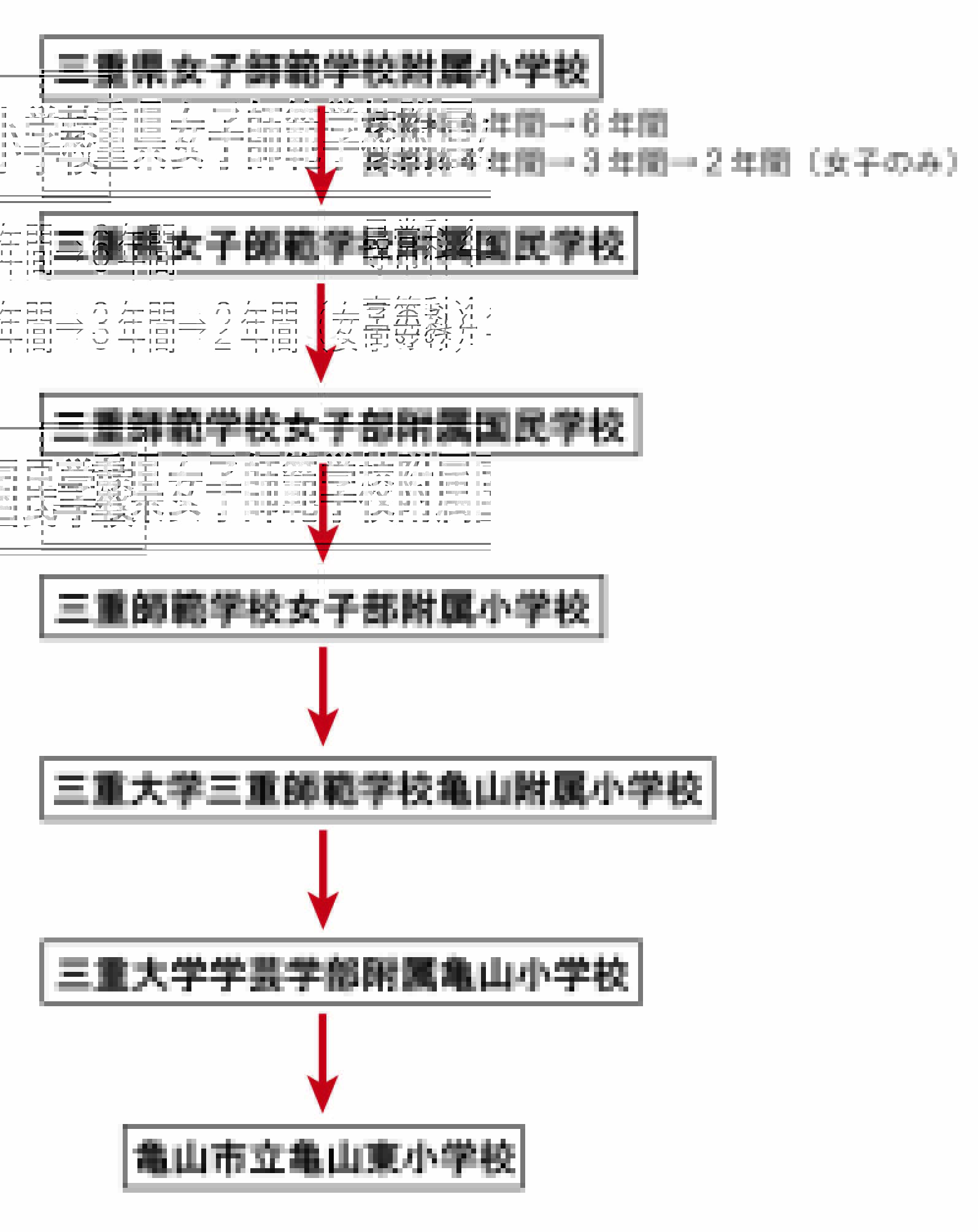 三重大学学芸学部附属亀山小学校(みえだいがくがくげいがくぶふぞくかめやましょうがっこう)は、三重大学学芸学部附属津小学校(みえだいがくがくげいがくぶふぞくつしょうがっこう)と一緒(いっしょ)になり、津市(つし)へ移(うつ)って、三重大学学芸学部附属小学校(みえだいがくがくげいがくぶふぞくしょうがっこう)となりました。