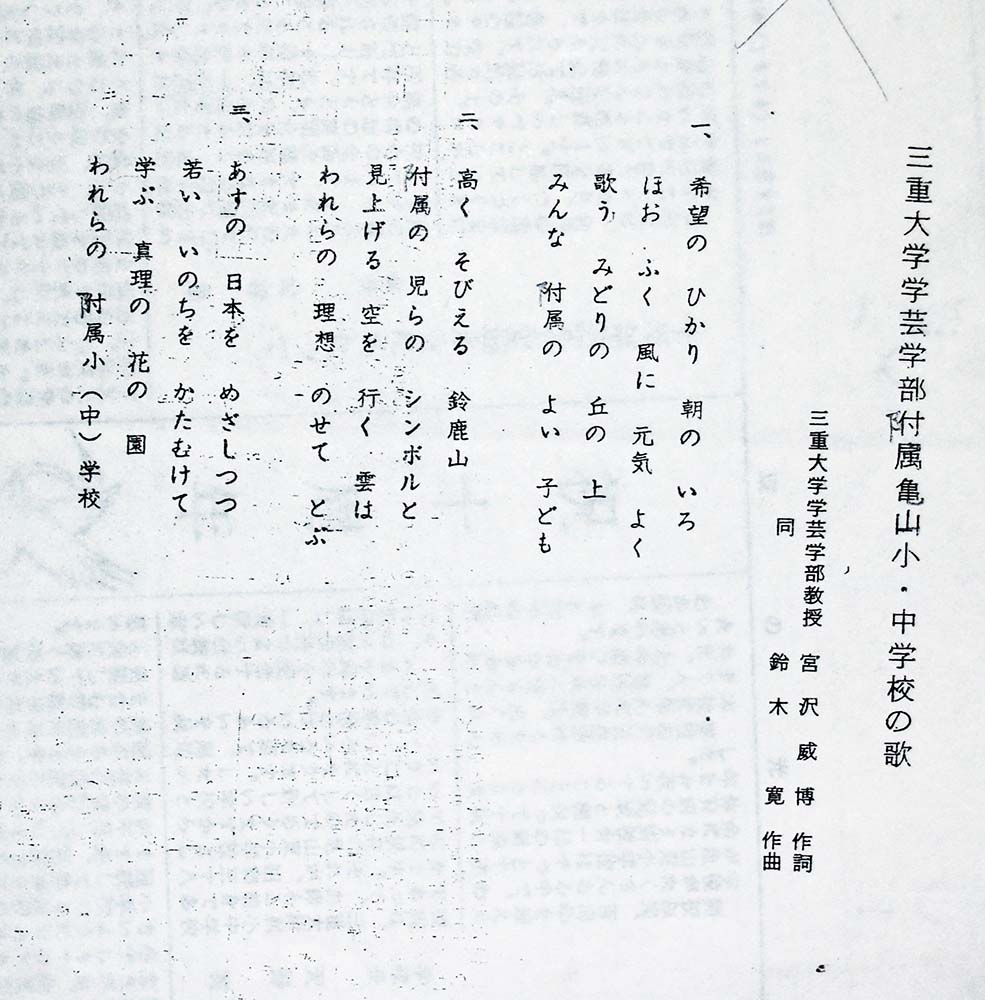 作詩(さくし)は宮沢威博(みやざわたけひろ)さん、作曲(さっきょく)は鈴木寛(すずきひろし)さんで、ふたりとも三重大学(みえだいがく)の先生(せんせい)でした。