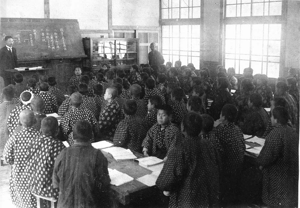 小学校(しょうがっこう)は尋常小学校(じんじょうしょうがっこう)と高等小学校(こうとうしょうがっこう)にわけられました。