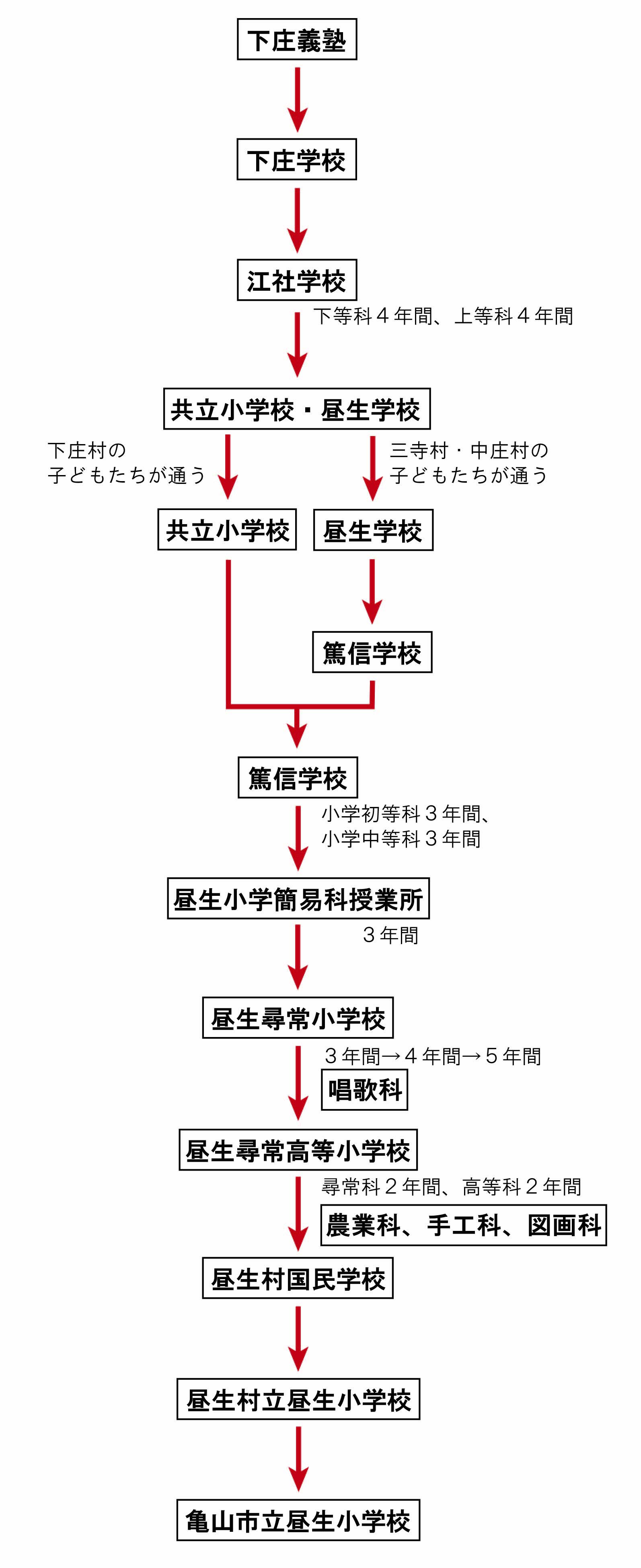昼生尋常小学校(ひるおじんじょうしょうがっこう)で学(まな)ぶ期間(きかん)が、尋常科(じんじょうか)4年間(ねんかん)になりました。