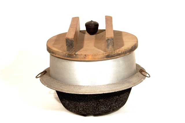 ガスや電気(でんき)が広(ひろ)まるまでは、どの家(いえ)にもかまど(「おくどさん」とよばれた)があり、かまどのたき口(ぐち)から、しば(細(ほそ)い枝(えだ))やたきぎを入(い)れて火(ひ)をおこして、「はがま」や「なべ」を使(つか)って料理(りょうり)しました。ちなみに、燃(も)え残(のこ)ったたきぎは、「火消(ひけ)しつぼ」の中(なか)に入(い)れて消(け)し炭(ずみ)とし、火(ひ)ばちやこたつなどに使(つか)いました。