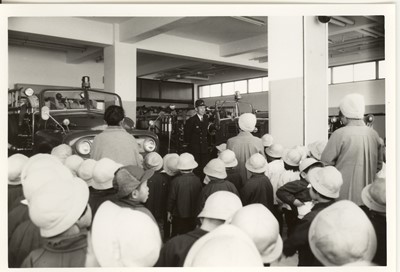 昭和(しょうわ)42年(ねん)の消防庁舎(しょうぼうちょうしゃ)竣工式(しゅんこうしき)