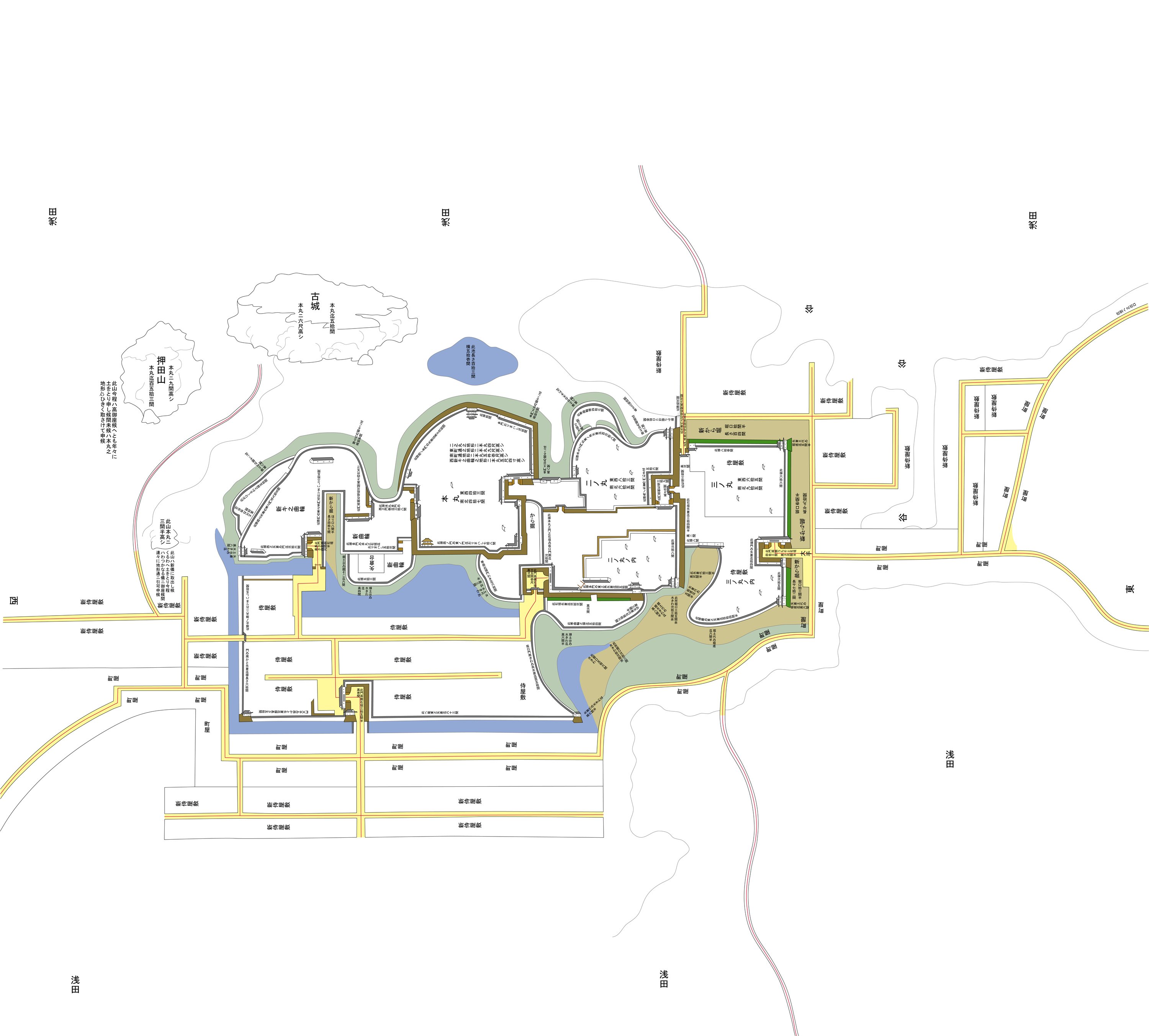 本多俊次(ほんだとしつぐ)の行(おこな)った整備(せいび)はつぎのようなものと考(かんが)えられます。①西出丸(にしでまる)と西之丸(にしのまる)を築(きず)きその周(まわ)りに堀(ほり)をつくった。②二之丸御殿(にのまるごてん)・二之丸向屋敷(にのまるむこうやしき)を整備(せいび)した。③本丸(ほんまる)に三重櫓(さんじゅうやぐら)を建(た)てた。④本丸南側(ほんまるみなみがわ)にあった谷(たに)を水堀(みずぼり)とした。⑤中屋敷(なかやしき)・江ケ室(えがむろ)・市ヶ坂(いちがさか)・南崎(みなみざき)・渋倉(しぶくら)・東台(ひがしだい)を武士(ぶし)が住(す)む場所(ばしょ)とした。