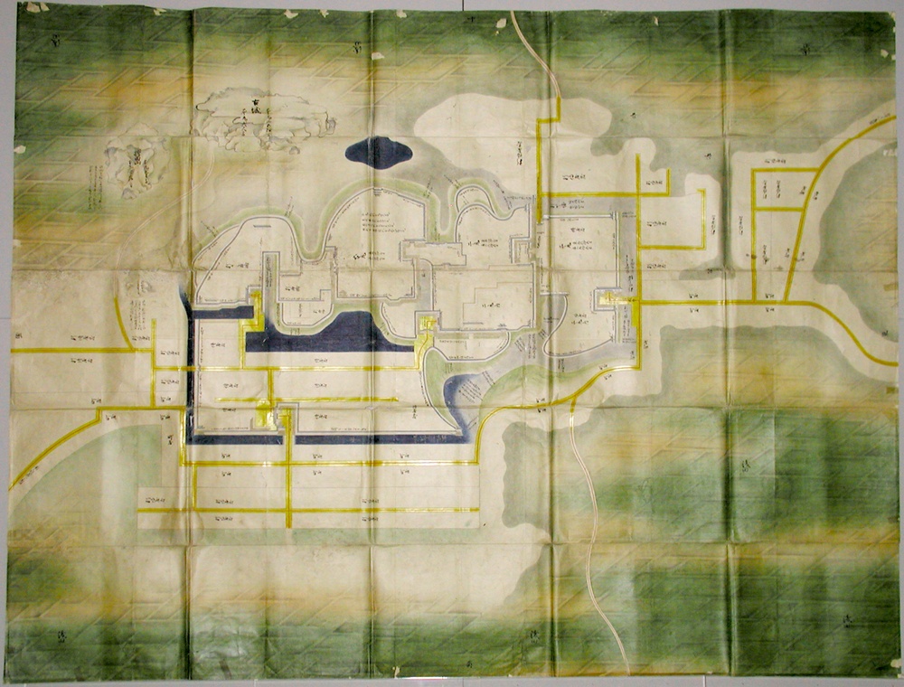 1644年(ねん)(正保(しょうほう)元年(がんねん))、幕府(ばくふ)は全国(ぜんこく)の城(しろ)を持(も)つ大名(だいみょう)に城(しろ)と城下町(じょうかまち)をくわしくえがいた図面(ずめん)をつくり提出(ていしゅつ)するように命(めい)じました。このときつくられた図面(ずめん)を「正保城絵図(しょうほうしろえず)」とよびます。現在(げんざい)、63の城絵図(しろえず)がのこされており、この中(なか)に亀山城(かめやまじょう)も含(ふく)まれています。亀山城(かめやまじょう)の整備(せいび)がおわったすぐ後(あと)にこの図面(ずめん)がつくられましたので、完成(かんせい)した亀山城(かめやまじょう)のようすを知(し)ることができます。また、歴史博物館(れきしはくぶつかん)にはこの図面(ずめん)のひかえとしてつくられたものがあります。