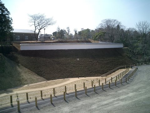 復元(ふくげん)されたの二之丸北帯曲輪(にのまるきたおびくるわ)の塀(へい)
